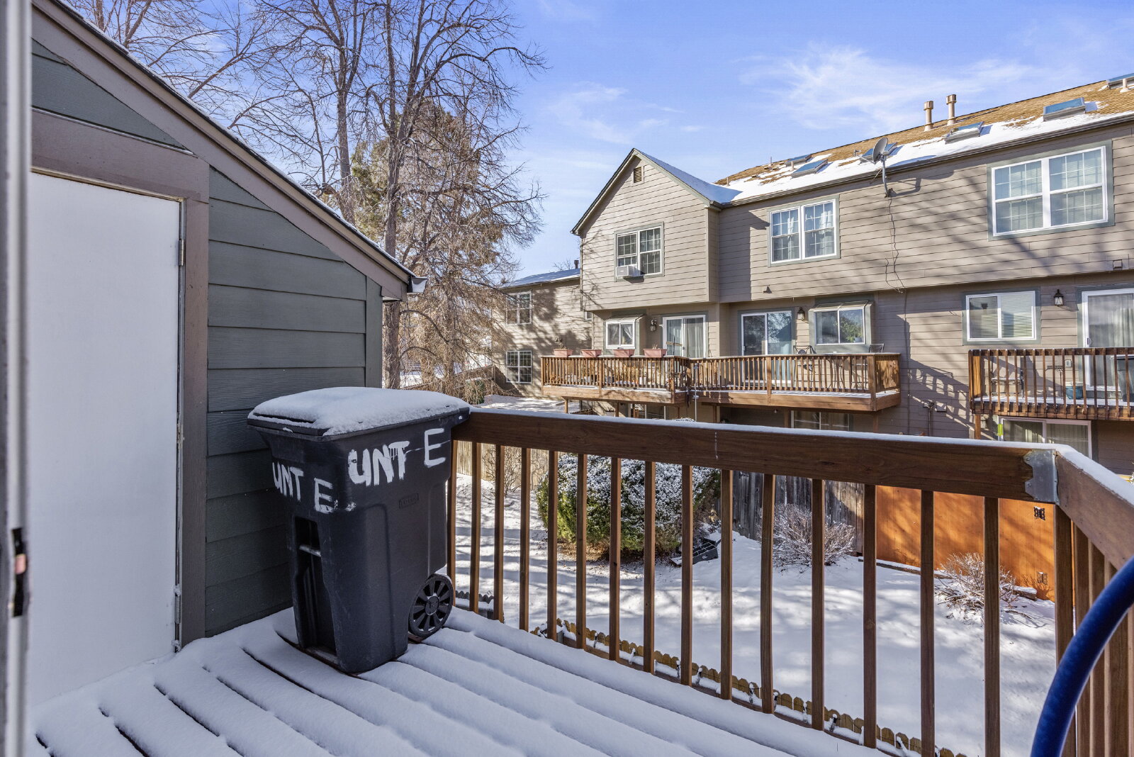 Community and nearby amenities include a dog park located behind the building and within the surrounding neighborhood, scenic walking and biking trails, and access to a community pool and clubhouse. The association provides water, sewer, trash, snow removal, and exterior maintenance. The property is located near Quincy Reservoir, local parks, and offers convenient access to shopping, dining, and major roadways.