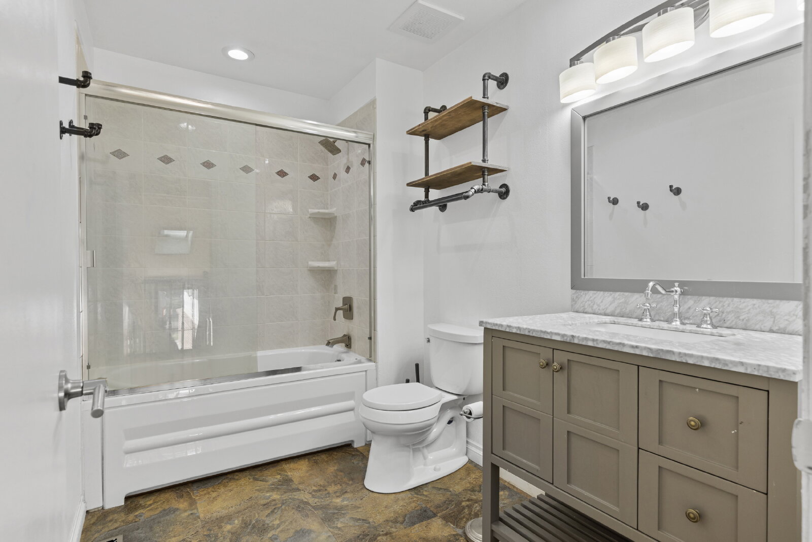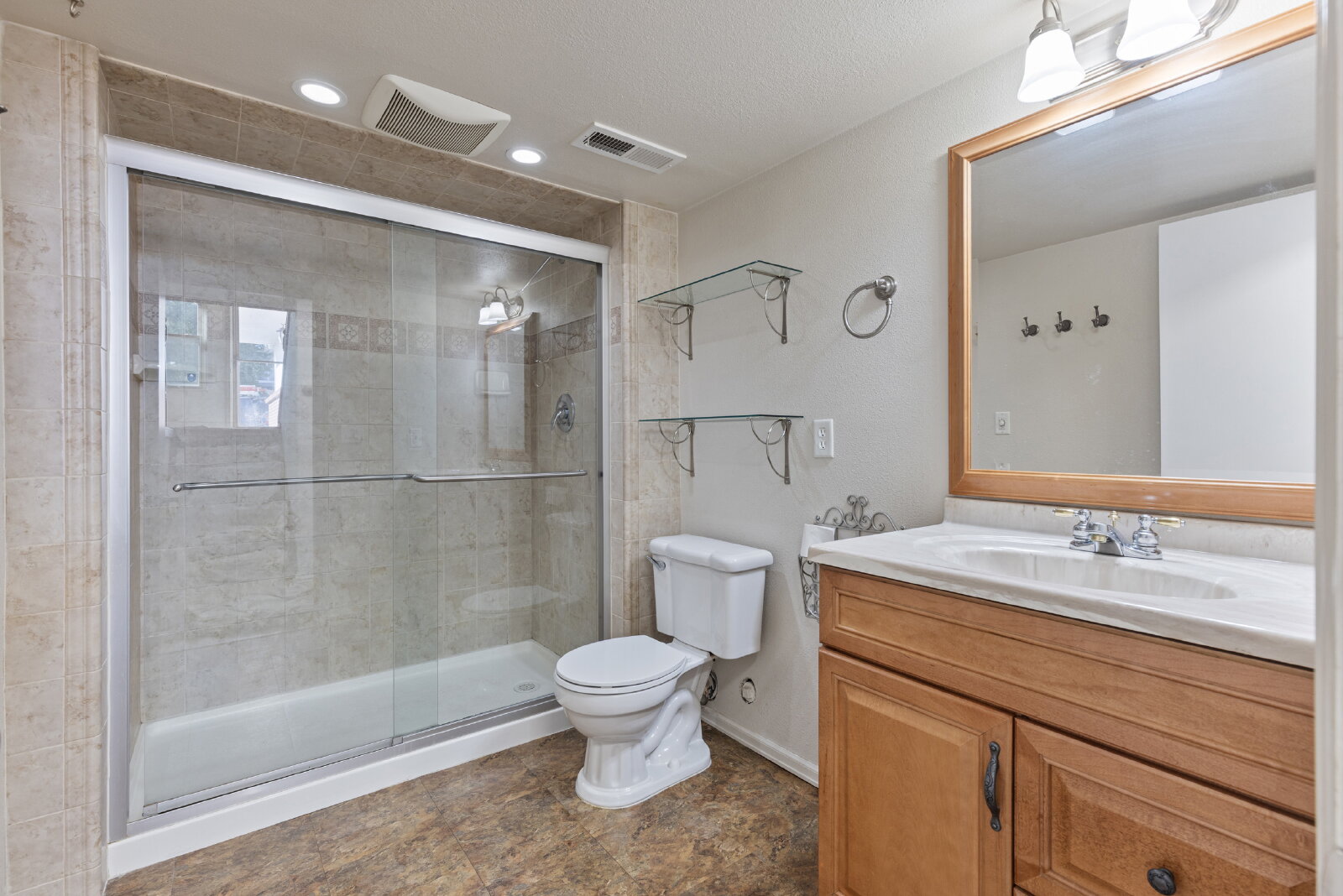 Each bedroom features updated engineered flooring, and the home includes a two-car attached garage along with additional parking for an RV or recreational equipment.