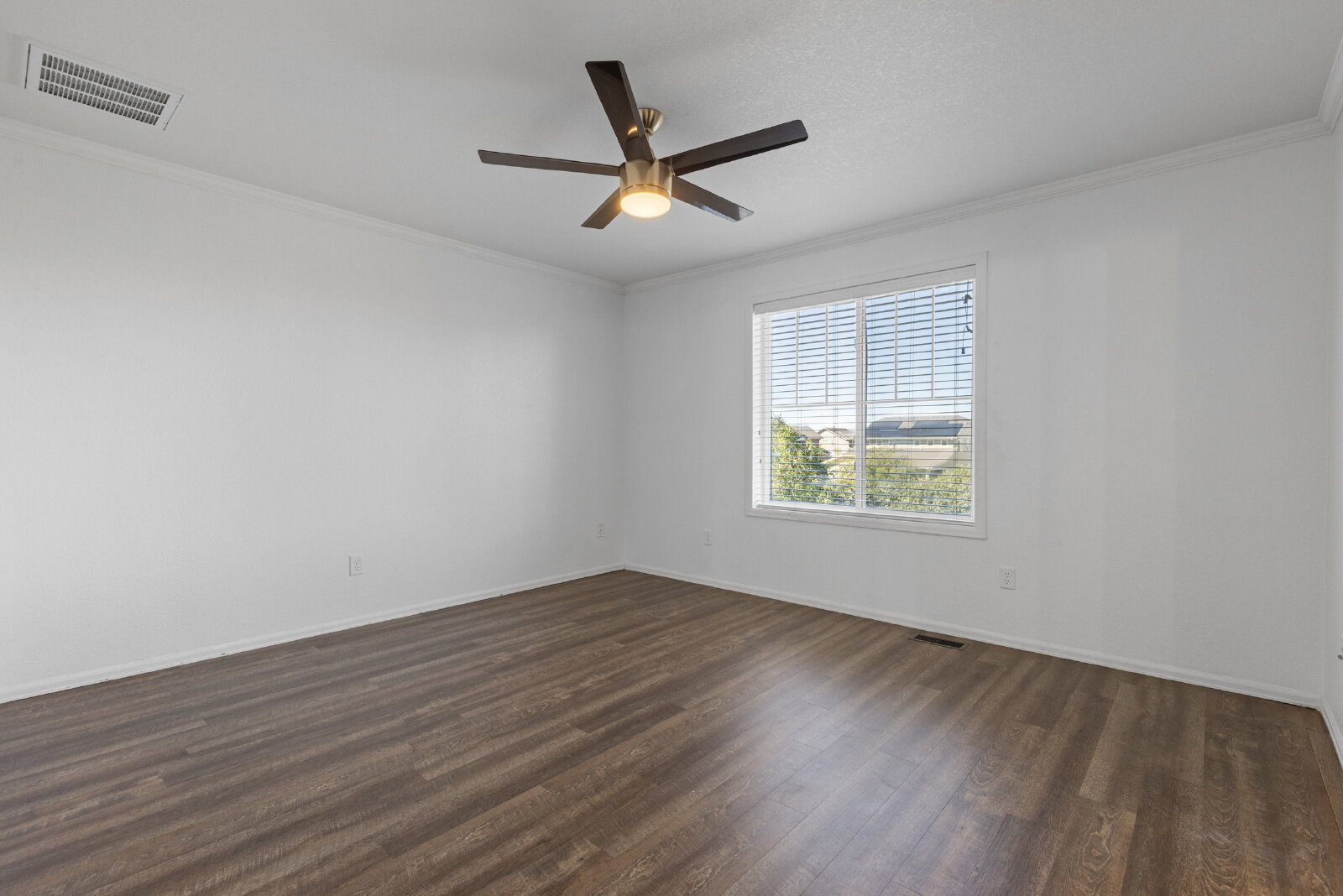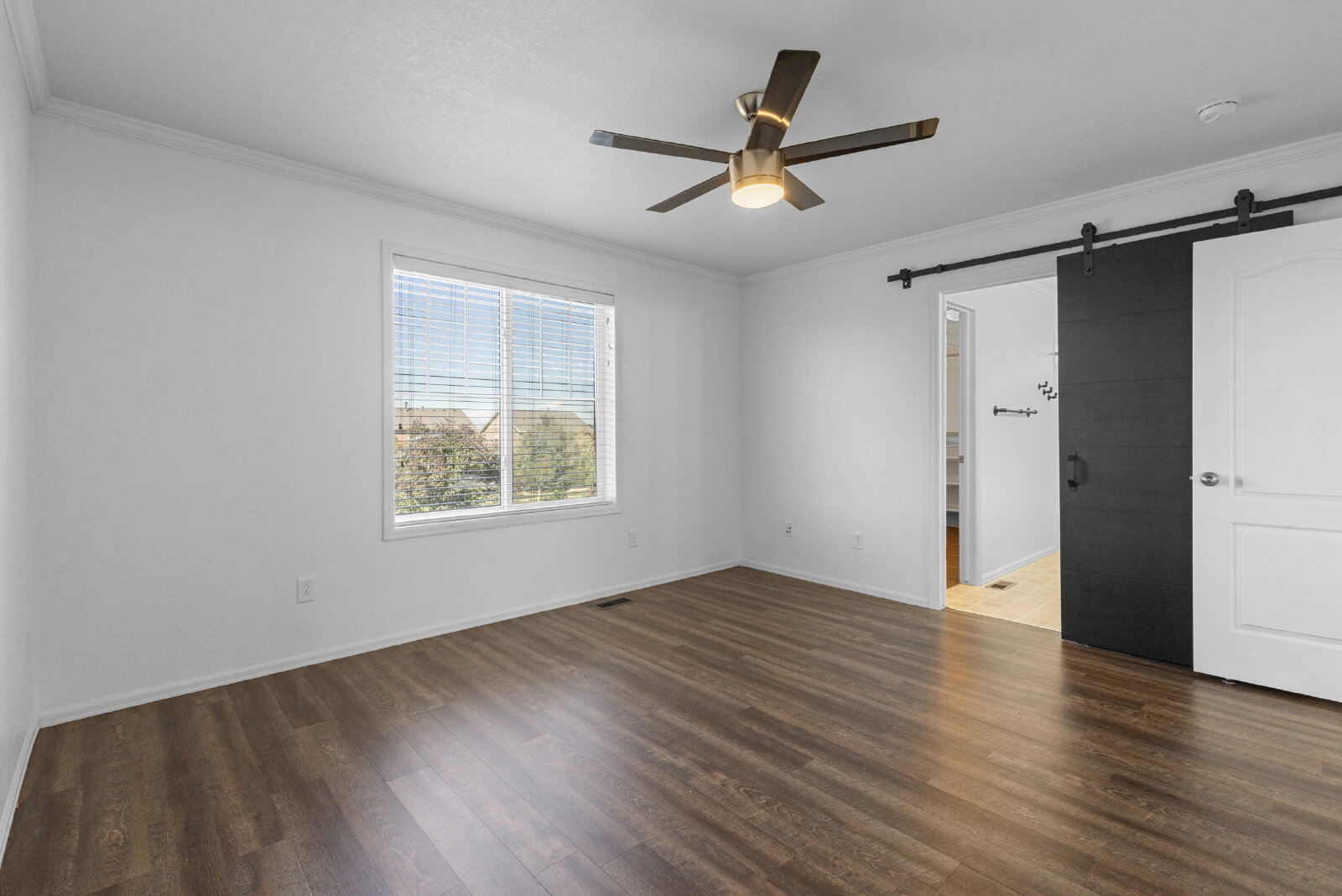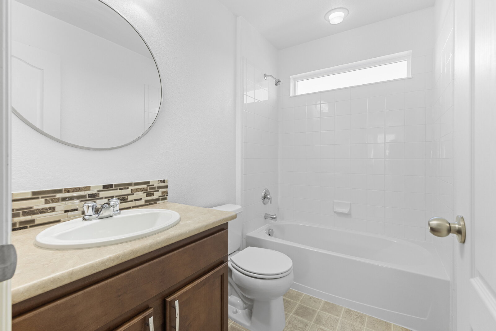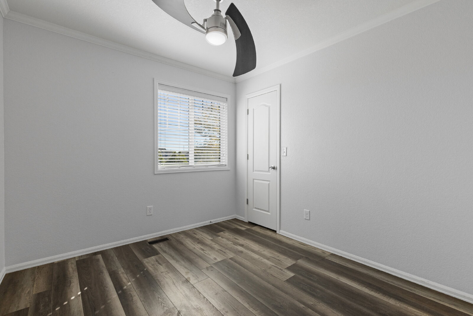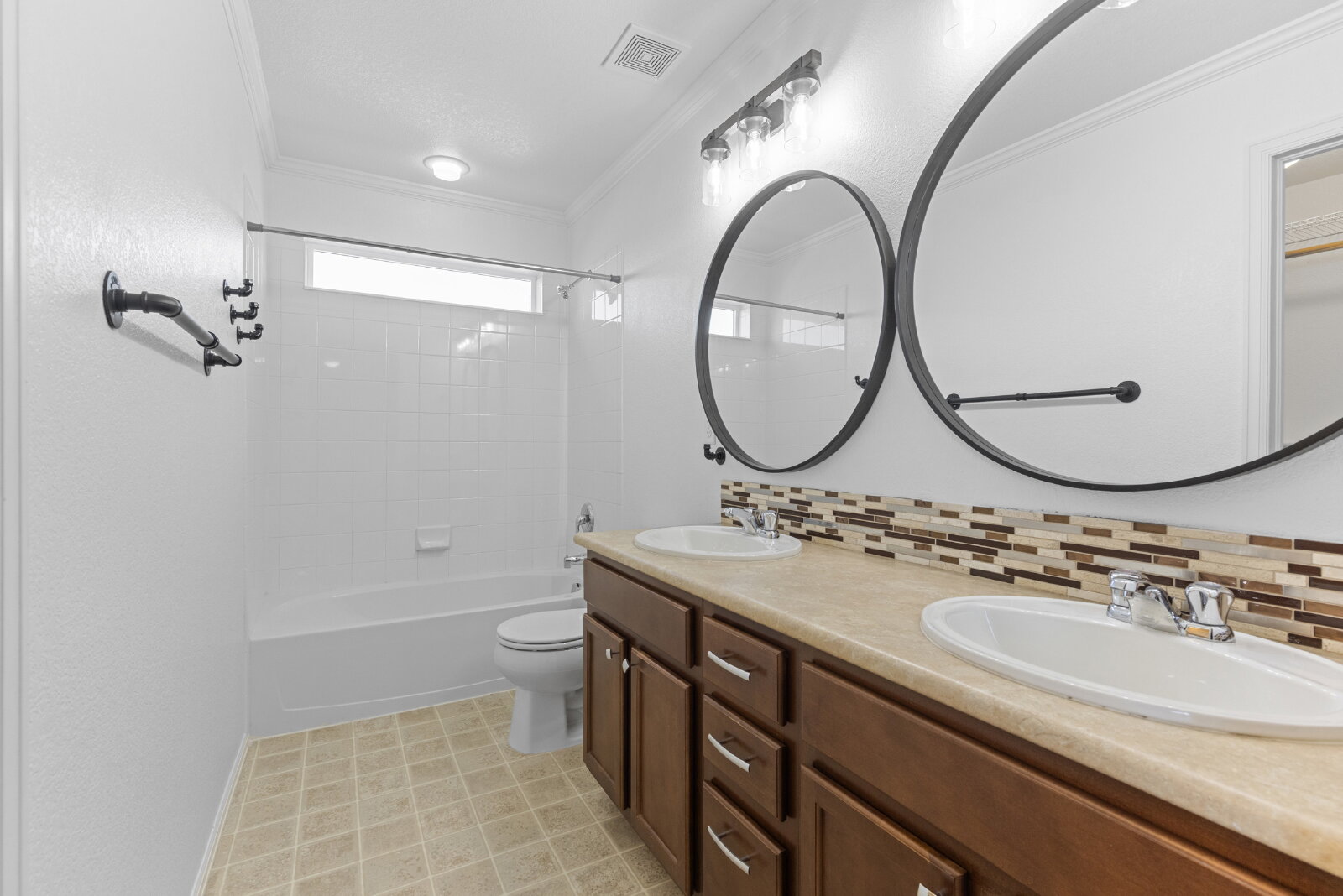 The primary suite includes a generous walk-in closet and a private bath with dual sinks, while additional bedrooms provide flexibility for work or rest. The second full bath has also been beautifully refreshed, offering modern fixtures and a clean, polished design that adds both function and style.